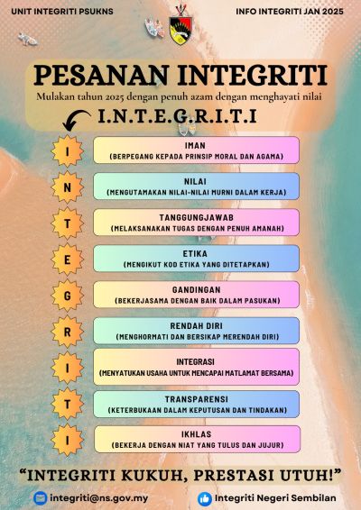 akan sentiasa berusaha mengekal dan mengamalkan budaya kerja berintegriti ;